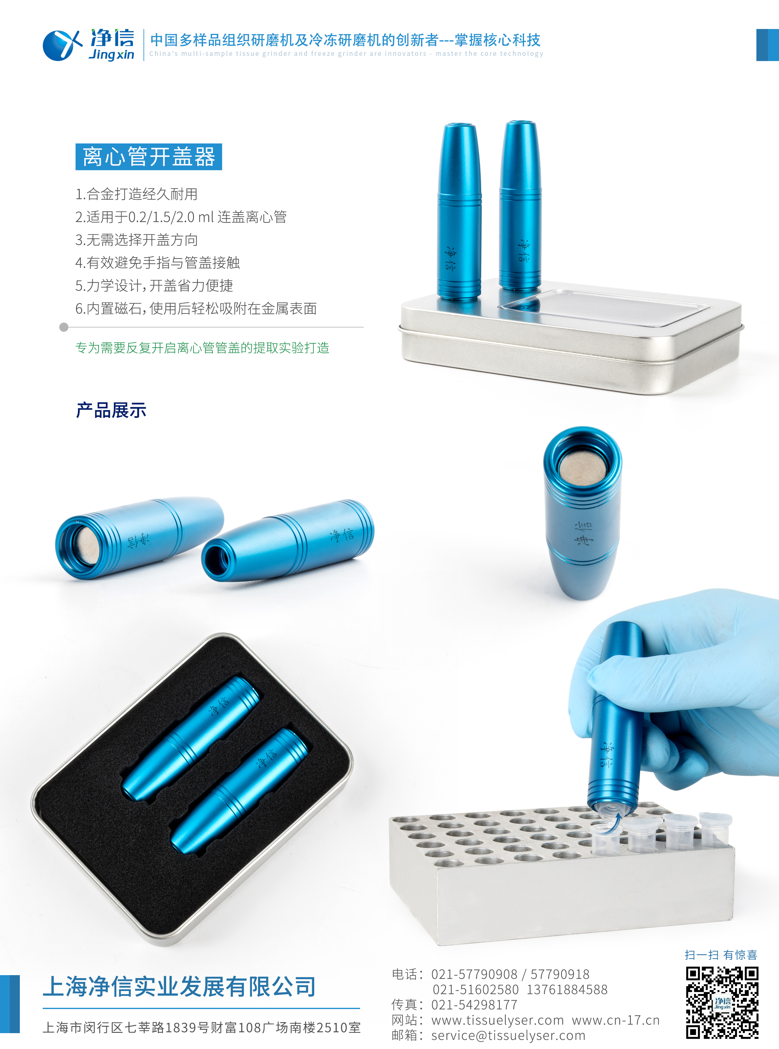 上海凈信一如既往的為科研工作者提供便捷,高效的科研產(chǎn)品;公司所推出的多樣品組織研磨機(jī),全自動(dòng)樣品快速研磨儀,冷凍組織研磨儀等產(chǎn)品得到 了廣大科研工作者的一致好評。![]()